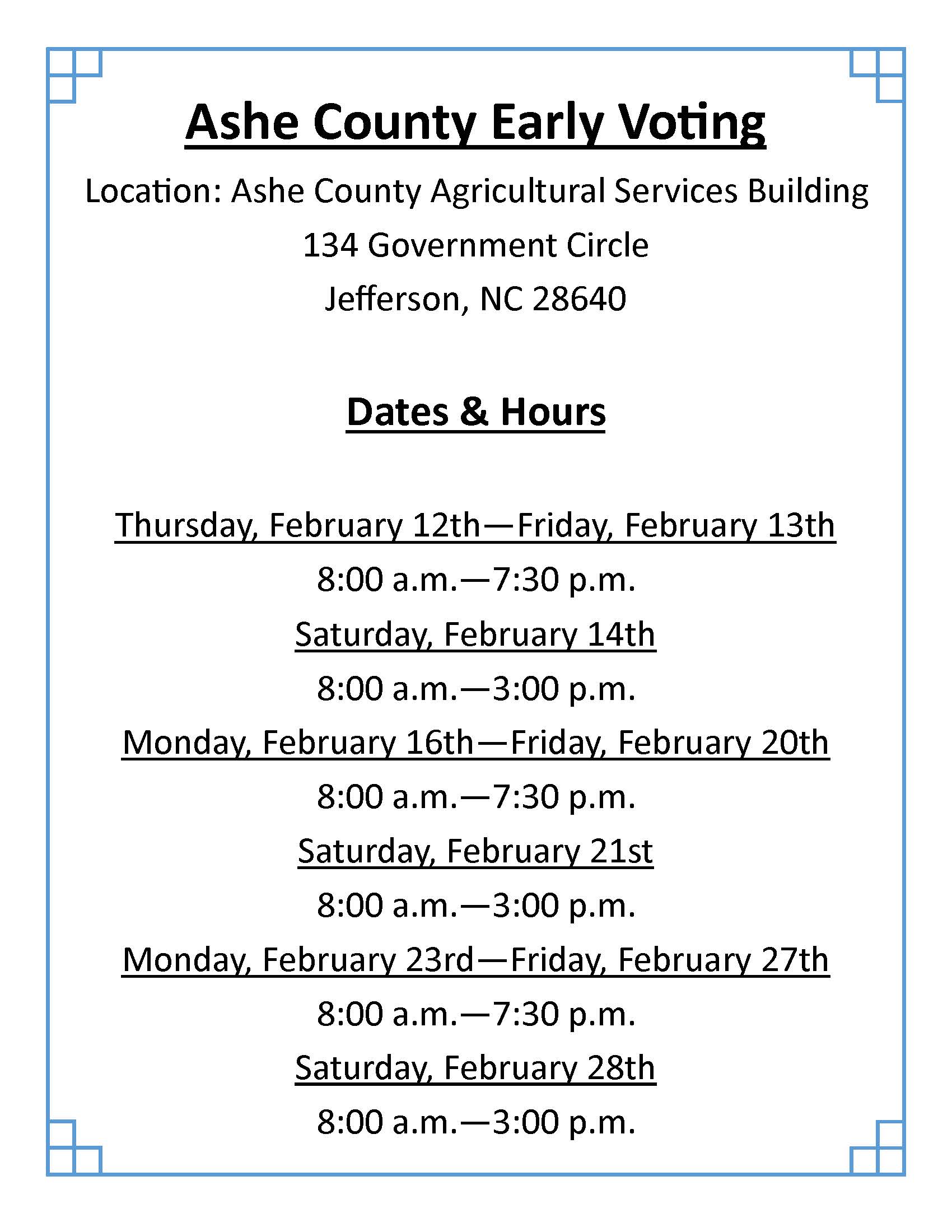 You have reached the Ashe County Board of Elections Website. We hope you find useful information that helps to better educate you in the election process.